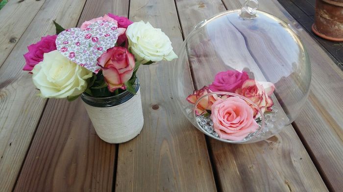 C'est décidé chaque centre de table sera différent, mais toujours avec les même fleurs , CE sera notre fil conducteur. Donc 8 centres de table à trouver....C'est parti pour les idées...(Rappel thème champêtre, un peu chic tout de même ^^)