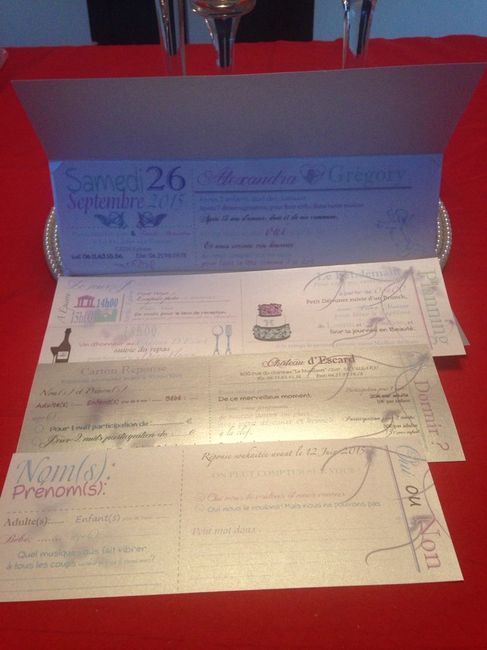 Salut à tous!! Par curisosité je me dermandais quel faire part avez vous choisi (photo)??? et quand on dit vos invités pour ceux et celles qui les ont déjà envoyés? Nous avons repéré un modele qui nous plait, simple et moderne...