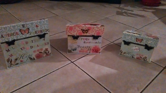 Il y a 4044 joursCoucou les filles, je vous poste mes dernieres creations. je vous montre trois boîtes. la grande pour les dragées la moyenne pour les enfants la petite que je laisserais dans ma chambre de princesse pour mes accessoires et bijoux. j'ai trouvé le...