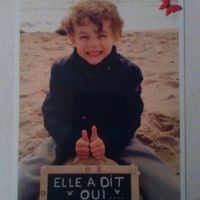 Il y a 4043 joursVoilà nos SAVE THE DATE Notre petit garcon voulait participer alors on a trouvé cette option. Petit homme cheveux aux vents sur la plage en mode trop content! j'adore. Un petit mot perso au dos et le tour est joué.