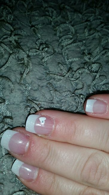2 ème essai manucure vous en pensez quoi ? Le 1er est dans mes photos la french était pailletée et un stickers coeur. ..