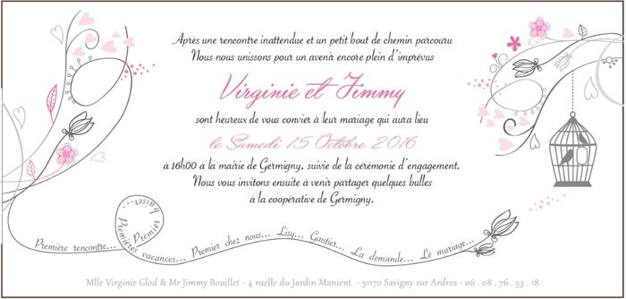 Coucou tout le monde je dois finaliser mon faire part avec ma cousine et jai besoin d une relecture pour les fautes au cas ou . il ne faut pas se planter une fois l imprimeur lancé c'est mort. en prime l'étiquette champagne, vous en pensez quoi ?...