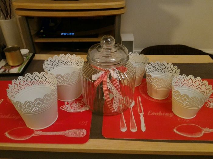 Le bocal pour mon sweety bar et les pots pour faire des centres de tables "arbres chamallows" et "arbres ferrerro"!J'ai trouvé une bonbonne à robinet mais j'hésite encore!On a fait une après-midi shopping avec maman! C'était top!