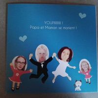 Il y a 3808 joursDécidément, je le kiffe mon facteur!!!!! Aujourd'hui surprise : l'échantillon du faire part concocté par nos filles (surtout l'aînée!), on est fier qu'elles contribuent au projet. Faire part Faire part