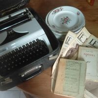 Il y a 2788 joursBonjour à toutes et tous.... Aujourd'hui petit Tour au parchemin, une petite boutique vide grenier .. on y fait toujours des affaires! Ce matin j'ai trouvé une machine à ecrire, un lot d'assiette, trois journaux,deux livres et des carte postales......