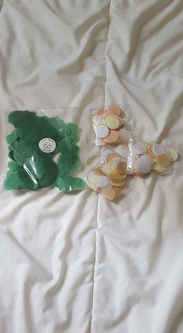 Bonsoir, Je tiens énormément à avoir de gros confettis pastel, j'en avais donc commandé je vous laisse voir les photos, la première ce qui est présenté sur le site, la seconde ce que j'ai reçu... 1000 pièces par sachet soit l'équivalent pour un lancé...