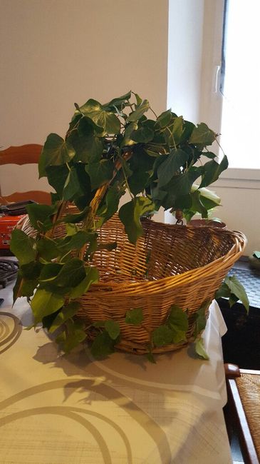 Par ce magnifique temps pluvieux je me suis attaquée au panier dragées et panier bonbons Ce matin sortie du chien et ramassage du lierre