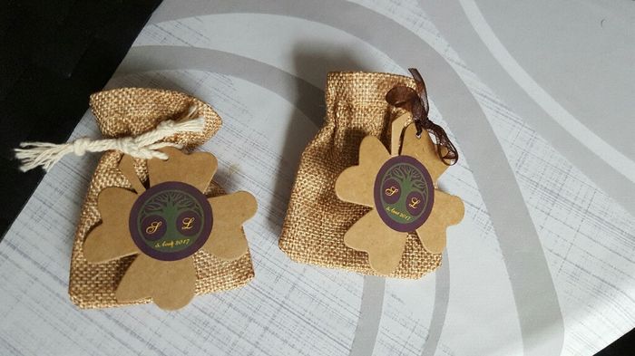 Et cc tout le mondeAprès une bonne ballade avec le chien pour récupérer de la mousse aprem essai contenants dragées. Je les ferai avec mes témoins fin avril après un spa ^^ Ceux en verre pour les femmesLes bourses en jute pour les hommes. Grosse...