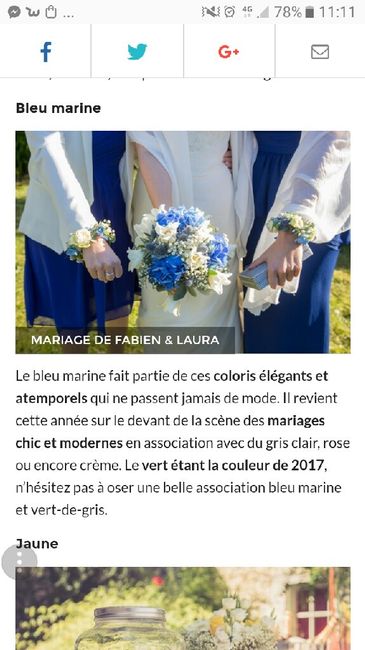 Coucou les filles j ai besoin de vos conseils je me marie en octobre et mon code couleur c'est le bleu marine et le corail . problème: la décoratrice que j'ai engagée me dit que le bleu marine ne va pas pour un mariage ET que l'apport de corail est...