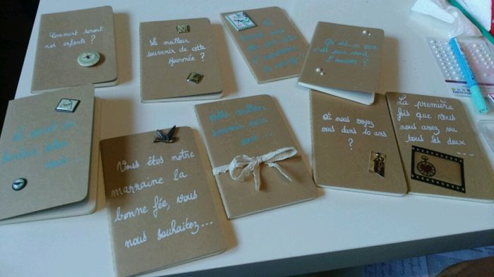 Juste pour vous faire partager ma petite réalisation du jour ! Des petits carnets à disposer sur les tables et que nous ferons tourner lors de la soirée. J'espère qu'ils donneront de l'inspiration à nos invités !