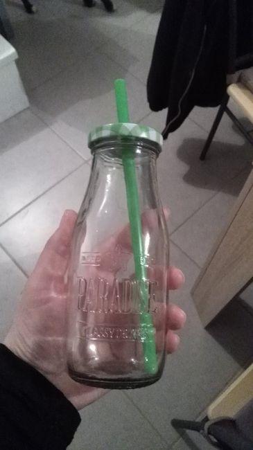 Coucou la commu, Comme le titre l'indique je suis en plein test déco pour le mariage. Voici l'idée pour le nom des tables sur la bouteille. Après j'hésite entre avec ou sans peinture (elle ne sera pas blanche c'est juste la seule peinture que j'avais...