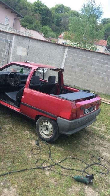 Bon Mr à craqué ce matin et à passé son AX en mode pik-up ! !! Elle sera customisé dans quelques jours avec ses témoins et amis pour servir de voiture balais pour le cortège ! !!