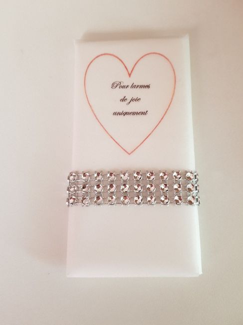 Voici les boîtes pour les témoins, elles leur seront donné ce soir pendant mon essayage coiffure, maquillage et robe 😊 Dans le petit sachet c'est des bonbons, j'ai rajouté les larmes de joie et des post it. J'espère que ça leur fera plaisir 🤞