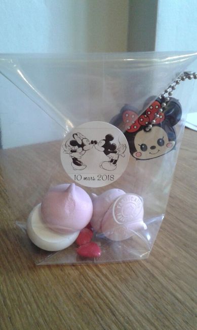 Bonjour tout le monde! Je voulais partager notre joie avec chéri. On a préparé hier nos cadeaux pour les invités. On a bien bossé. 120 sachets a préparer! Mais on est super fiers de nous. On a mis des meringues et des dragées en chocolat plus un...