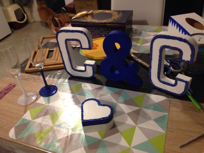 Coucou, je ne publie pas souvent mais je vous lis très très souvent 😃 Voici les avancés du moment la boule chinoise décorée de rubans comme urne, nos initiales qui seront sur la table d'honneur, notre boîte à alliance manque plus qu'à fabriquer un...