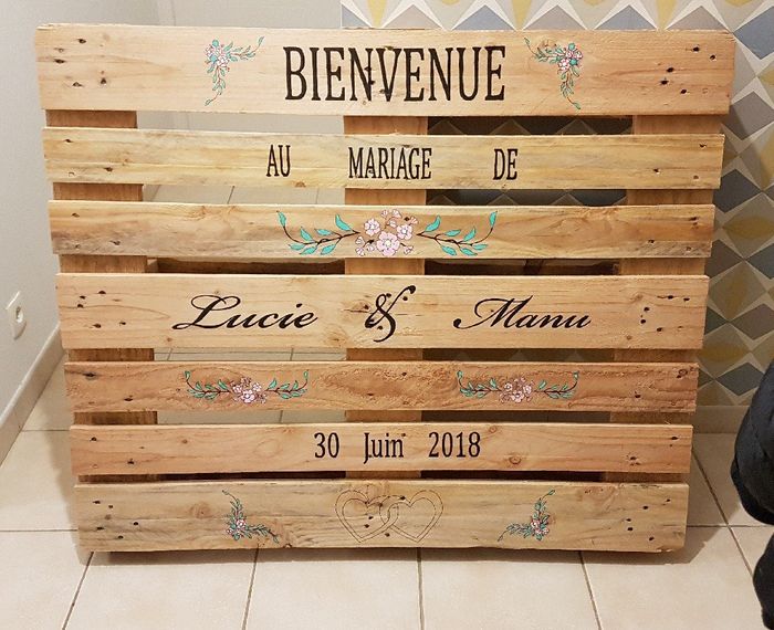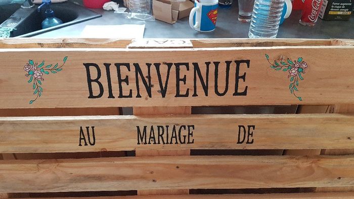 Bonsoir, Comme dit dans le titre voilà le résultat de notre panneau de Bienvenue. Ce n'est pas parfait mais je suis assez contente du résultat.