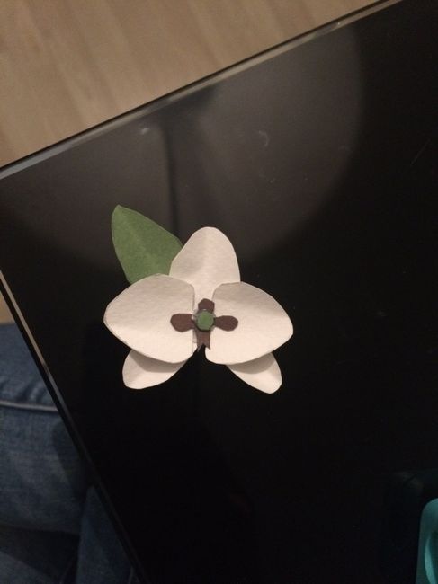 Bonjour à toutes! Je tente la fabrication d’orchidée en canson pour mettre sur nos marques place. C’est le tout premier prototype qu’en pensez vous?