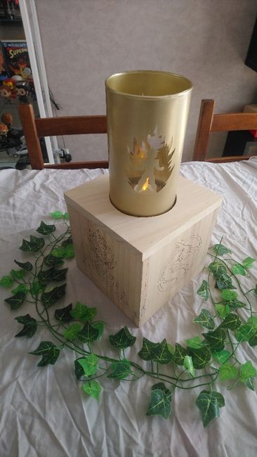 Bonjour bonjour, Aujourd'hui je me suis relancée dans les diy. J'ai fini mon urne mais j'ai l'impression qui manque un truc... Peut être écrire une jolie phrase en doré en bas ? Merci de vos avis