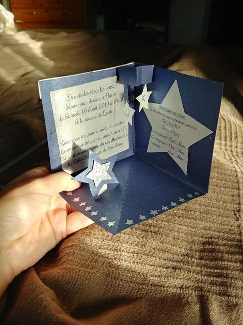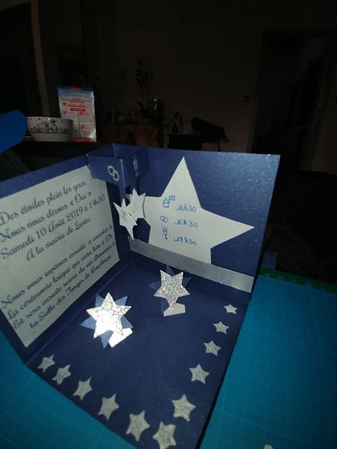 Bonjour tout le monde, Aujourd'hui je me suis motivĂ©e Ă tester diffĂ©rentes idĂ©es de faire-part, pour voir ce que ça donnait en vrai et pas dans ma tĂȘte Il faut savoir que notre thĂšme ce sont les Ă©toiles ! Premier essai : Vue globale DeuxiĂšme...