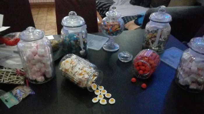 Cc tout le monde c'est encore moi avec mes petits détails déco !!!! Je vous fais parts De mais panier dragées faits par les mains a ma mamie !!! Gris homme rose femme 1 par personne
