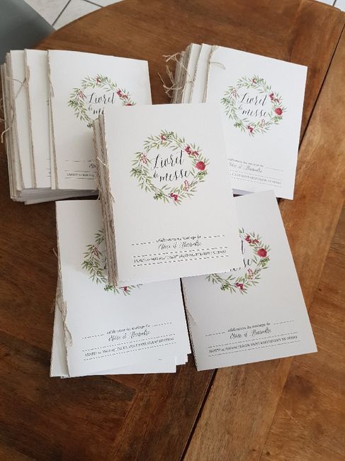 Bonjour à tous, Je suis plus que ravie, nos livrets de messes sont fini! C'était la dernière tache avant le mariage le 4 mai... Pffiu... un petit coup de pression 😬 d'autant que nous avons fait notre répétition à l'église hier soir, ca te ramène vite...