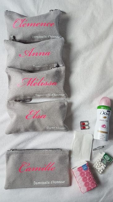 Coucou à toutes !! Voici les petites trousses que je vais offrir à mes 5 demoiselles d'honneur et à ma témoin, le weekend prochain lors de mon EVJF 😊. Je vais faire certainement un petit livret en + pour ma témoin avec son rôle avant et le jour J !!!...