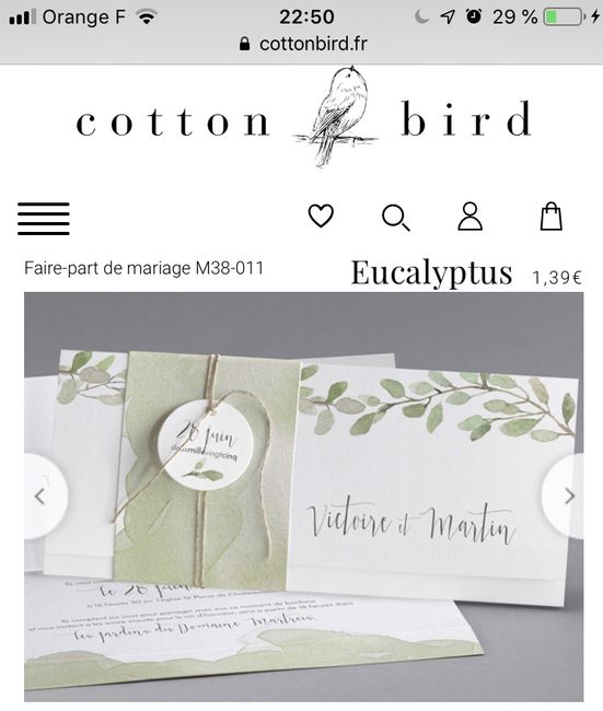 Je recommande a 200% cotton bird ! je viens de recevoir les faire parts et carte réponse et je suis trop trop contente ! Encore plus jolie qu’en vrai 😍😍😍