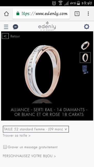 Coucou à tout le monde! Voilà, je suis toujours à la recherche de ma précieuse et hier, en regardant les idées sur Internet, j'ai flashé sur une qui ressemble de très près à la bague de fiancaille. Je suis donc aller voir ma bijouterie habituelle qui...
