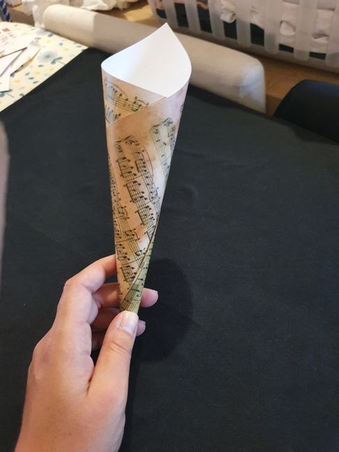 Ateliers Atelier du soir.... après avoir imprimé des partitions de musique 🎵 🎶 j'ai ce soir fabriquer des cônes qui serviront à accueillir la lavande sécher pour la sortie de la mairie....