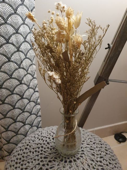 Fleurs séchées de chez centrakor si certaines sont intéressées....petite déco pour le vin d'honneur...j'ai gardée un bouquet pour en mettre dans mon bouquet car c'est ma belle maman qui le fait...