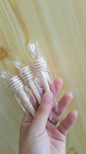 Nos premiers achats pour le mariage. Les pots de miels avec la cuillère pour les femmes . Reste plus que les bouteilles pour le rhum pour les hommes. Cela va remplacer les dragées pour plus d'originalité. Qu'est-ce que vous en pencer?
