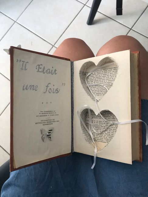 Coucou ! Voici le porte alliance que mon chéri a fait avec un vieux livre (theme du mariage : Les contes). Que pensez-vous qu’il faille que je rajoute ? Je trouve qu’il est trop simple...