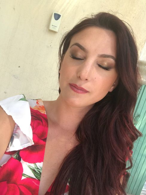 Coucou !! A 35 jours du mariage j’ai fait mon essai maquillage. Qu’en pensez-vous ? J’ai demandé à ce qu’elle accentue le côté doré et bien sur le rouge à lèvre aussi (j’ai mangé entre temps je l’avoue 😂).