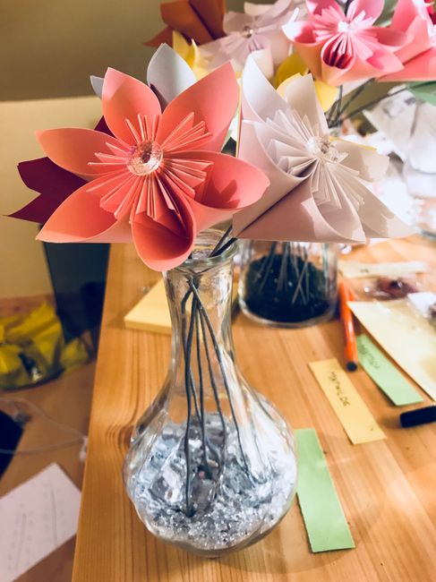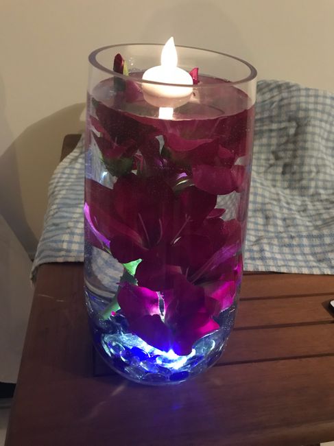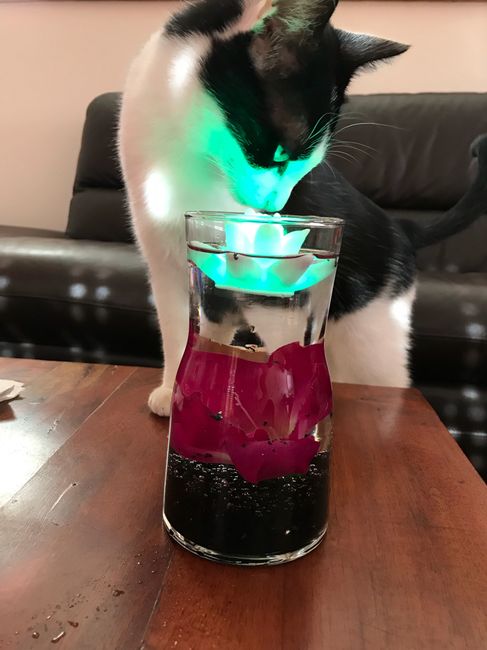 Bonsoir ! une nouvelle composition avec un vase plus petit, une Led en forme de fleur qui change de couleur (j’adore 😍)! et mon chat qui ne sait pas encore s’il valide la chose 😂 A moins de 50 jours du mariage je commence à m’activer ^^ Et vous ça...