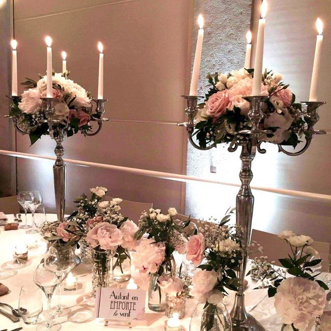 Bonjour !! Je ne poste pas très souvent mais ce matin je viens vous présenter ma déco florale pour les tables. La table d'honneur sera comme sur la photo et ensuite sur chaque table ronde il y aura un bougeoir comme sur la photo avec plus ou moins la...