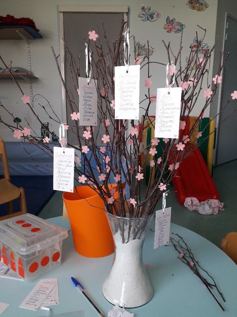 Voici mon plan de table sur le thème zen ! Inspiration d'un arbre a voeux Ce sont des branches où j'ai collé des fleurs de cerisier en papier cartonné