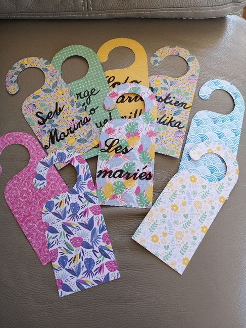 Re-bonjour! Après l'achat de l'urne ce matin, je me suis lancée cet après midi dans la fabrication des accroches portes ! Je les mettrai bien sur sur les portes des chambres invités du domaine afin que chacun sache où installer ses affaires ! Qu'en...