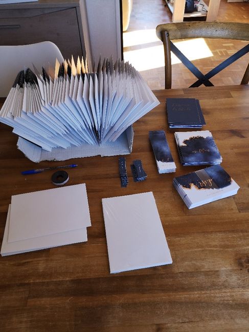 Une étape de plus ! Bientôt, je poste mes faires-part ! En passant, je les trouve très beaux mais un peu déçue de la qualité chez Cotton bird... Mes finitions sont grossières (la découpe n'est pas très nette, le ruban s'effiloche...) et plusieurs...