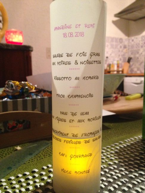 A J-130, beaucoup de choses restent encore à faire!!! Mais j'ai enfin fini mon prototype de dragées et avancer sur celui des menus (quelques finitions avec des rubans à prévoir) vous en pensez quoi? 🙂