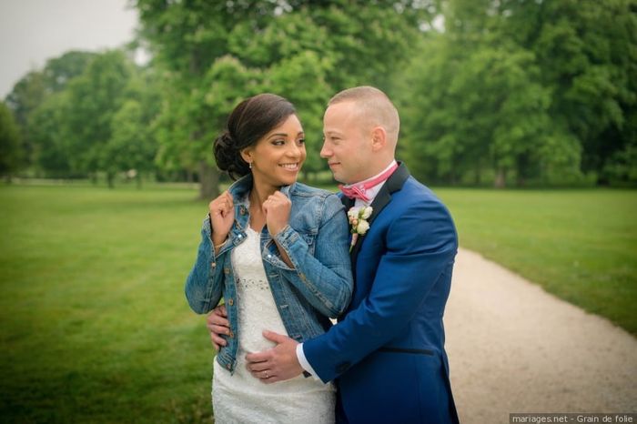Hello la commu 💜 Que pensez-vous de la veste en jean pour la mariée ? Cela peut être trop décontracté pour certaines ! Êtes-vous pour ou contre la veste en jean ?