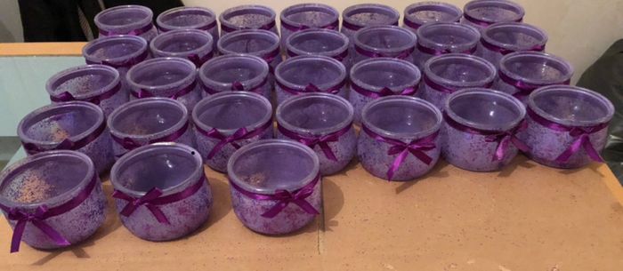 Cc la commu ces derniers jours avec une de mes témoins et ma fille on a bien travaillé. Toutes nos boîtes à dragées sont finies et les pots à bougies à mettre sur les tables aussi 😁 qu’en pensez-vous ?