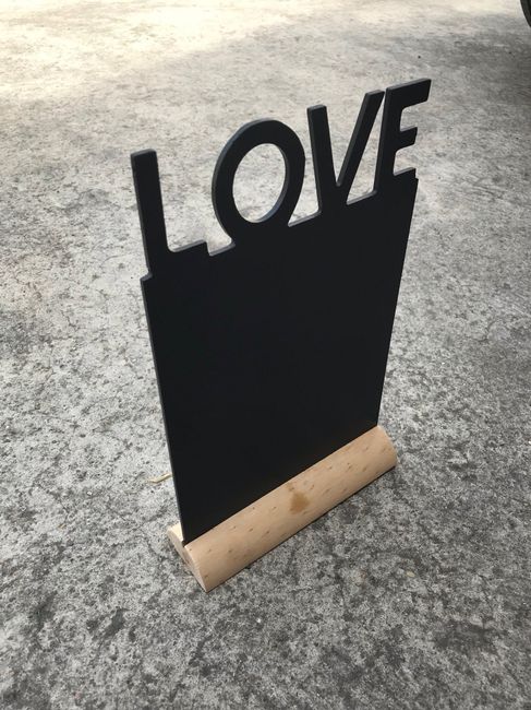 Cc voici ce que j'ai trouvé chez Action je suis trop contente pour 1,48€ l'ardoise "love"je vais mettre les consignes pour écrire sur les cœurs en bois du livre d'or en cadre 😜