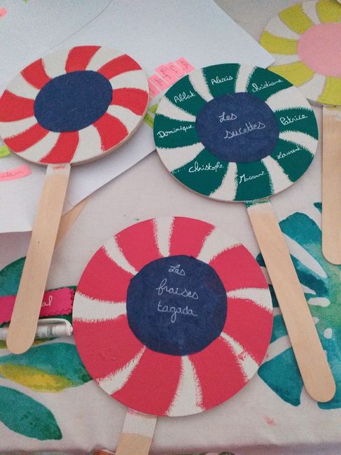Hello les futures mariées Nous avons fait beaucoup de choses maison mais ce qui m'a vraiment pris du temps est le plan de table alors je voulais avoir vos avis sur le résultat final (cela doit ressembler à des sucettes elles seront plantées dans une...
