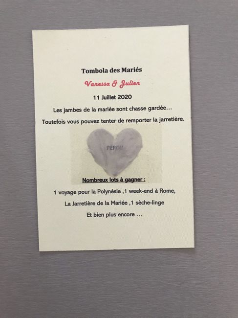 Billets de tombola des mariés souci nous voyons toujours les mots perdu pour celles qui l’on Fait, est ce que vous avez mise une couche ou deux de peinture ?????