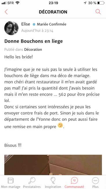 Bonjour, Pour nos marques places et menus nous avons prévu d'utiliser des bouchons de liège. Cependant, comme il nous en faut beaucoup, les acheter neufs revient vite à très cher --' Nous voulions prendre des déjà utilisés mais auriez-vous une astuce...