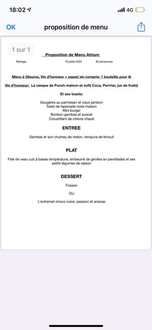 Bonjour nous avons trouve un restaurant près de chez nous pour le mariage qui nous a proposé un menu à 30 euros. Je vous le met en photo. Pouvez vous me dire ce que vous en pensez svp ?