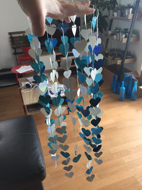 Hello les filles, je voulais partager avec vous mes mobiles de cĆurs en papiers qui seront suspendus au dessus de la piste de danse !