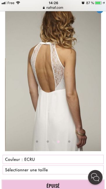 Ça y est, j’ai enfin trouvé ma robe pour le lendemain. J’avais hésité entre des tons fleuri et de l´ecru ou blanc et je suis tombée sur une robe Naf Naf écru magnifique avec un dos ouvert comme j’en rêvais Bon le rendu sur moi n’est pas aussi...