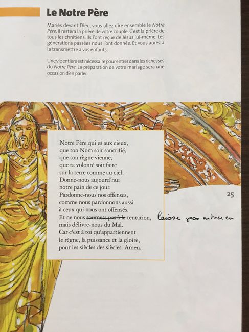 Bonjour à toutes à 1 mois du mariage je me pose des questions sur la cérémonie. Je suis déçu du prêtre qui nous a vaguement expliqué comment ça aller se passer et quand il me dit que l on doit écrire la prière universelle et que je lui demande quoi...