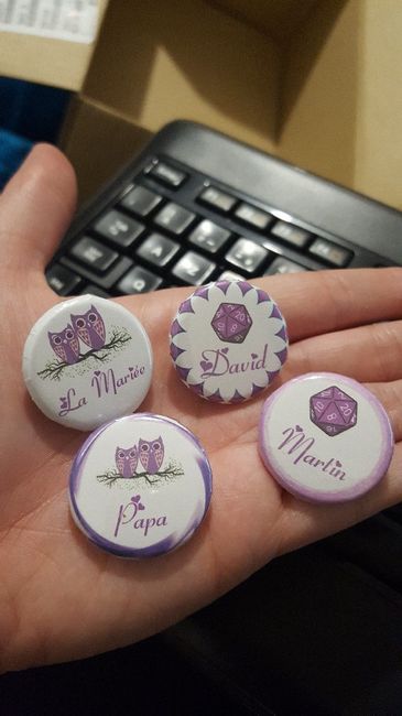 Bonjour à tous Aujourd'hui c'était journée badges entre la créations des modèles, le découpage et l'utilisation de la badgeuse (badge it) tout le monde a pu participer ^^ Ceux avec le hibou sont pour la team mariée, ceux avec le dès 20 sont pour...